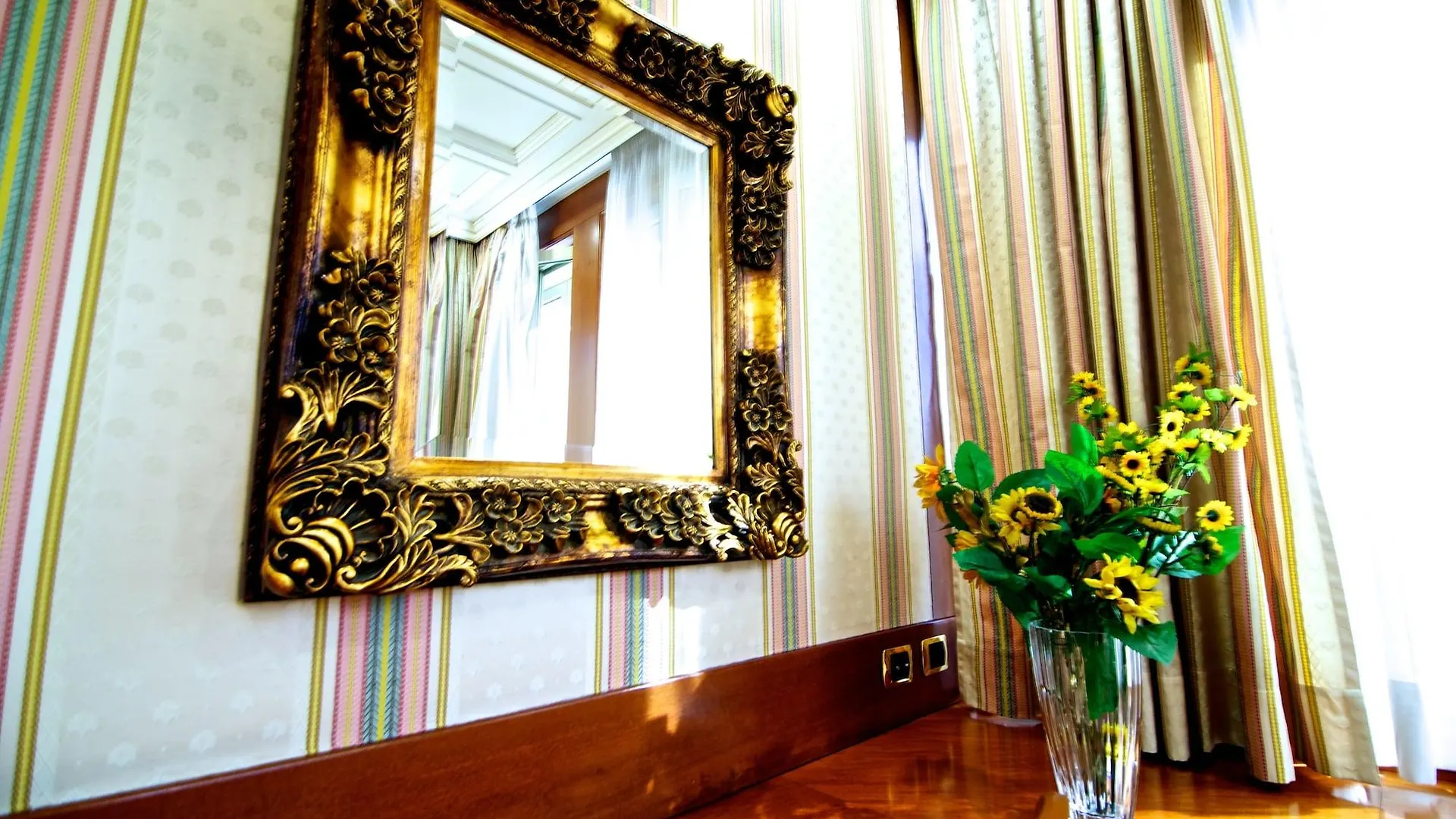 The rooms at this Rome hotel include climate control, as well as media facilities like a flat-screen TV with satellite channels. They are appointed with a writing table, and also feature a mini-fridge-bar and coffee/tea making equipment. The bathroom is equipped with a bidet, a spa bathtub, and a shower, along with shower caps and towels.